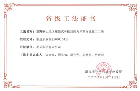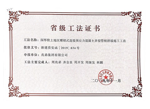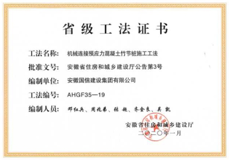 <p style="text-indent: 2em;"><span style=";font-family:微軟雅黑;font-size:14px"><span style="font-family:微軟雅黑"></span></span>公司擁有“無端板連節(jié)式竹筋管樁施工工法”“沿海軟土地區(qū)螺鎖式對接預應力異型方樁施工工法”、“裝配式螺鎖連接異型管樁智慧植樁施工工法”、“預應力混凝土離心樁無剪切快速強拉對接施工工法”、“無端板連接式竹筋管樁施工工法”、“機械連接預應力混凝土竹節(jié)樁施工工法”、“深厚軟土地區(qū)螺鎖式連接預應力混凝土異型管樁拼接施工工法”、“軟土地區(qū)螺鎖式連接剛柔組合樁施工工法”等8項國家級、省級工法技術。</p><p style="text-indent: 2em;"><br/></p>