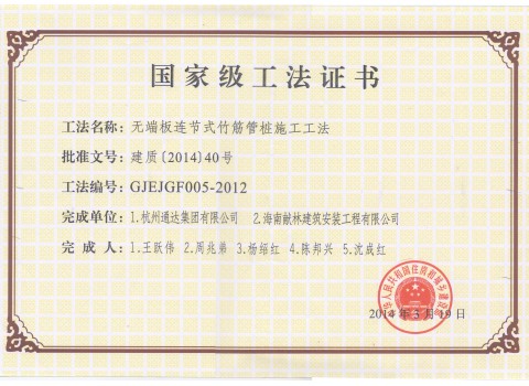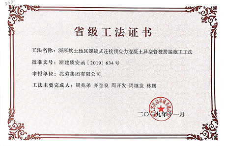 <p style="text-indent: 2em;"><span style=";font-family:微軟雅黑;font-size:14px"><span style="font-family:微軟雅黑"></span></span>公司擁有“無端板連節(jié)式竹筋管樁施工工法”“沿海軟土地區(qū)螺鎖式對接預應力異型方樁施工工法”、“裝配式螺鎖連接異型管樁智慧植樁施工工法”、“預應力混凝土離心樁無剪切快速強拉對接施工工法”、“無端板連接式竹筋管樁施工工法”、“機械連接預應力混凝土竹節(jié)樁施工工法”、“深厚軟土地區(qū)螺鎖式連接預應力混凝土異型管樁拼接施工工法”、“軟土地區(qū)螺鎖式連接剛柔組合樁施工工法”等8項國家級、省級工法技術。</p><p style="text-indent: 2em;"><br/></p>